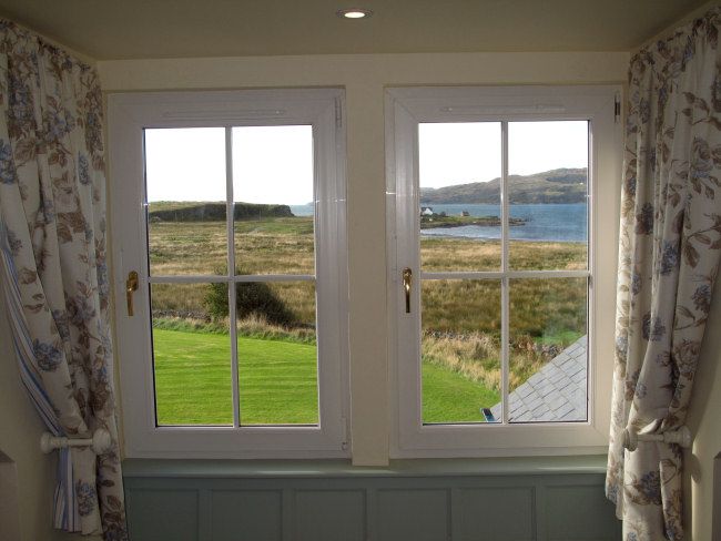 Downstairs there is a King size double room and a single bedroom with a pull out bed, both face north up the expanse of the Island, very rural and bucolic. Both are zimmer frame friendly, and are carpeted. They share a wet room.